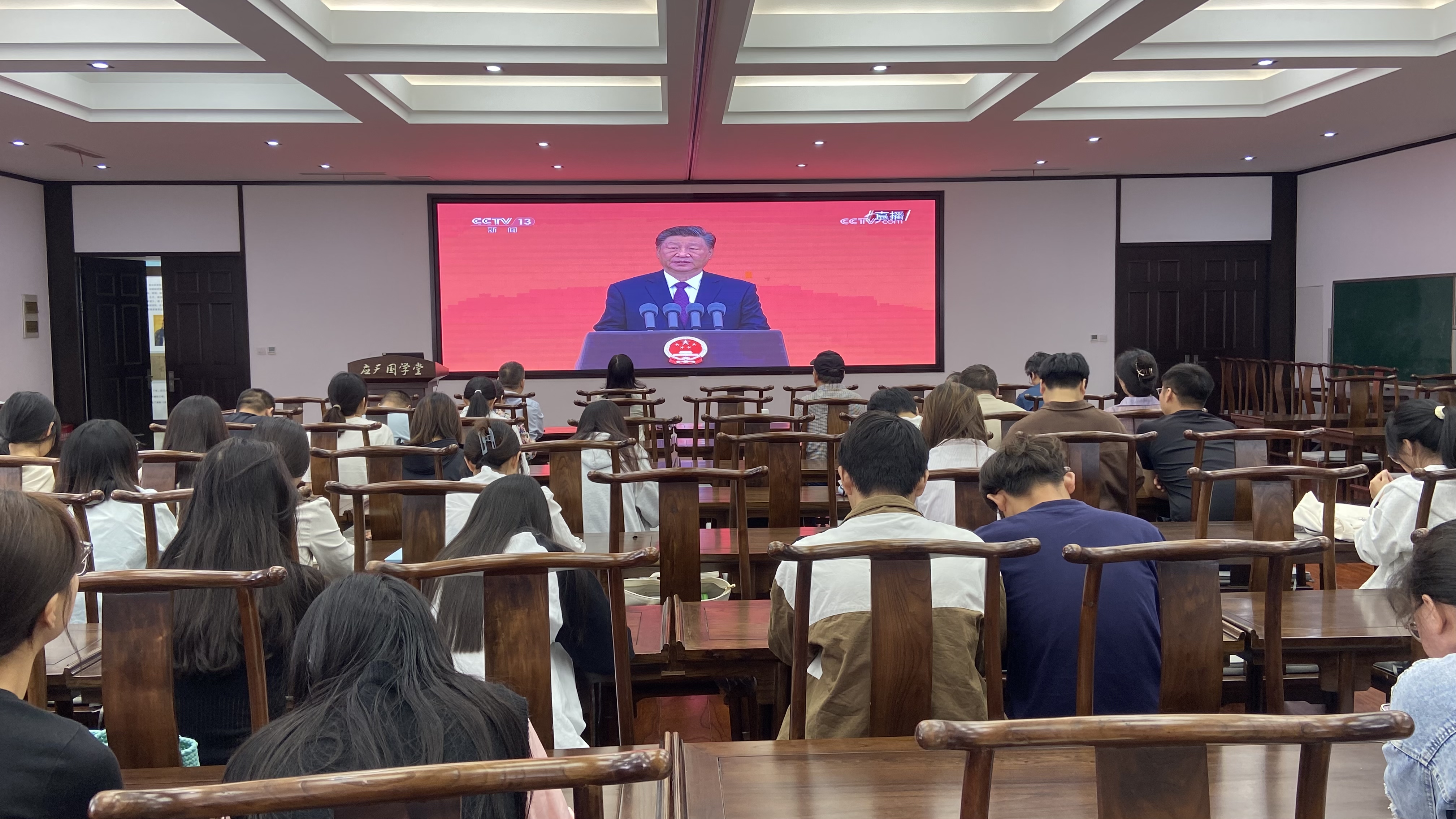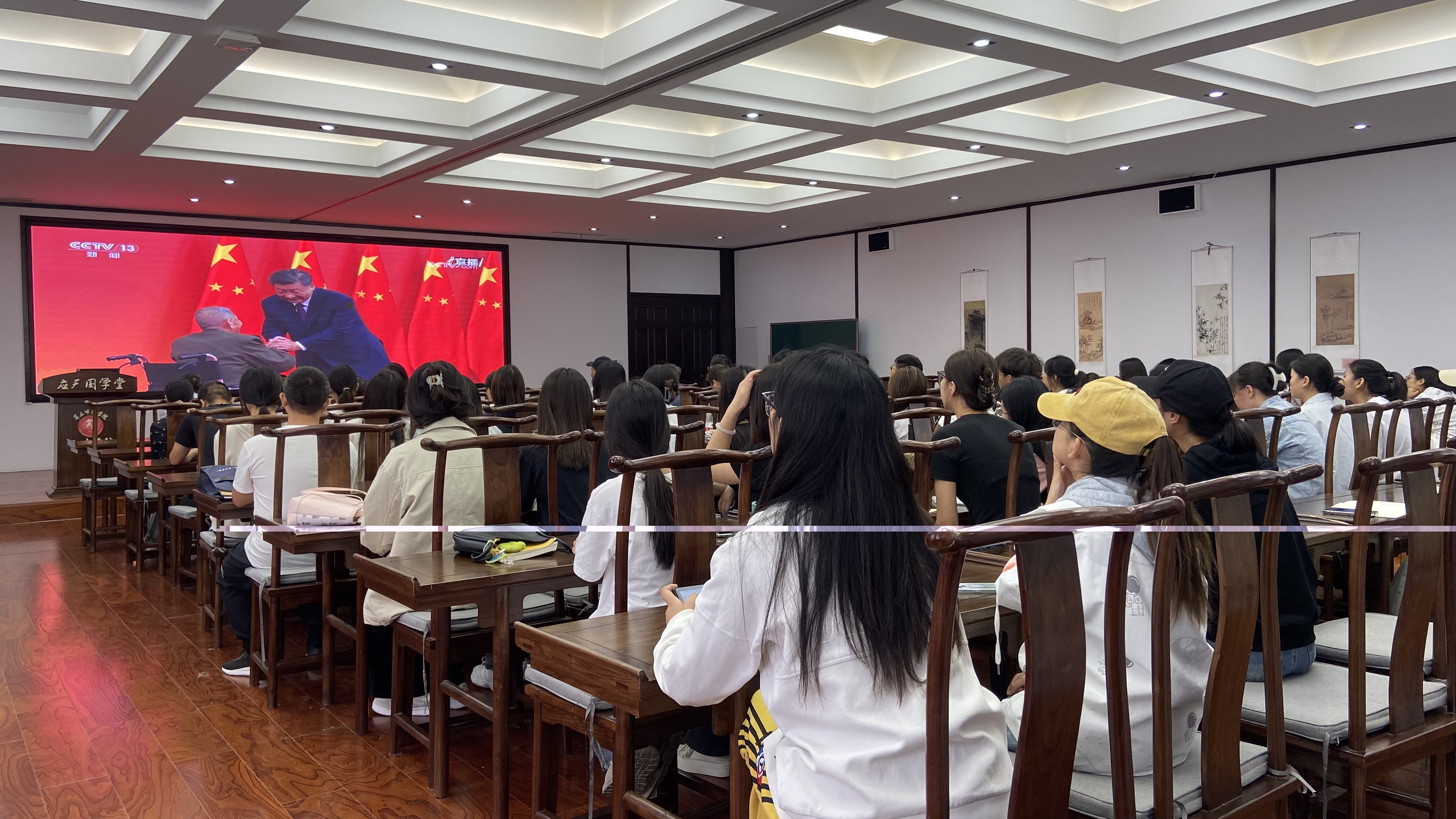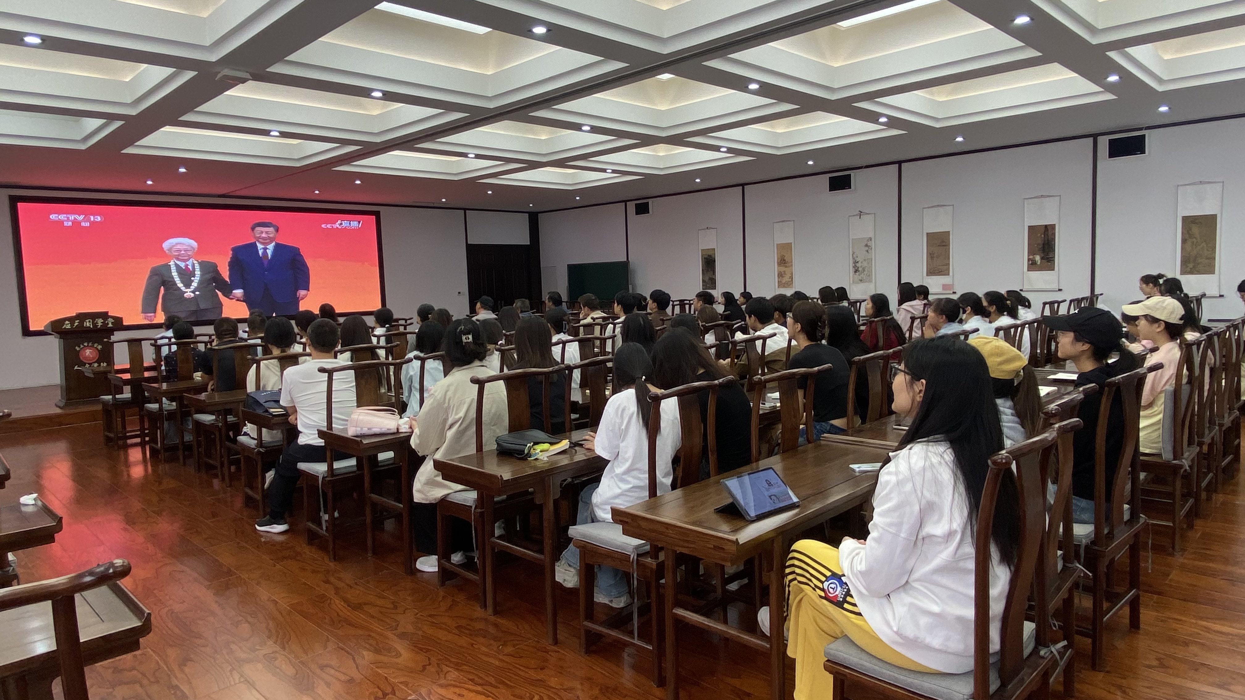 为全面贯彻落实党的二十届三中全会和习近平总书记在全国教育大会上的重要讲话精神,9月29日上午,Beat365官方网站于国学堂组织师生观看了中华人民共和国国家勋章和国家荣誉称号颁授仪式。学院班子成员、支部书记和师生代表参加观看。