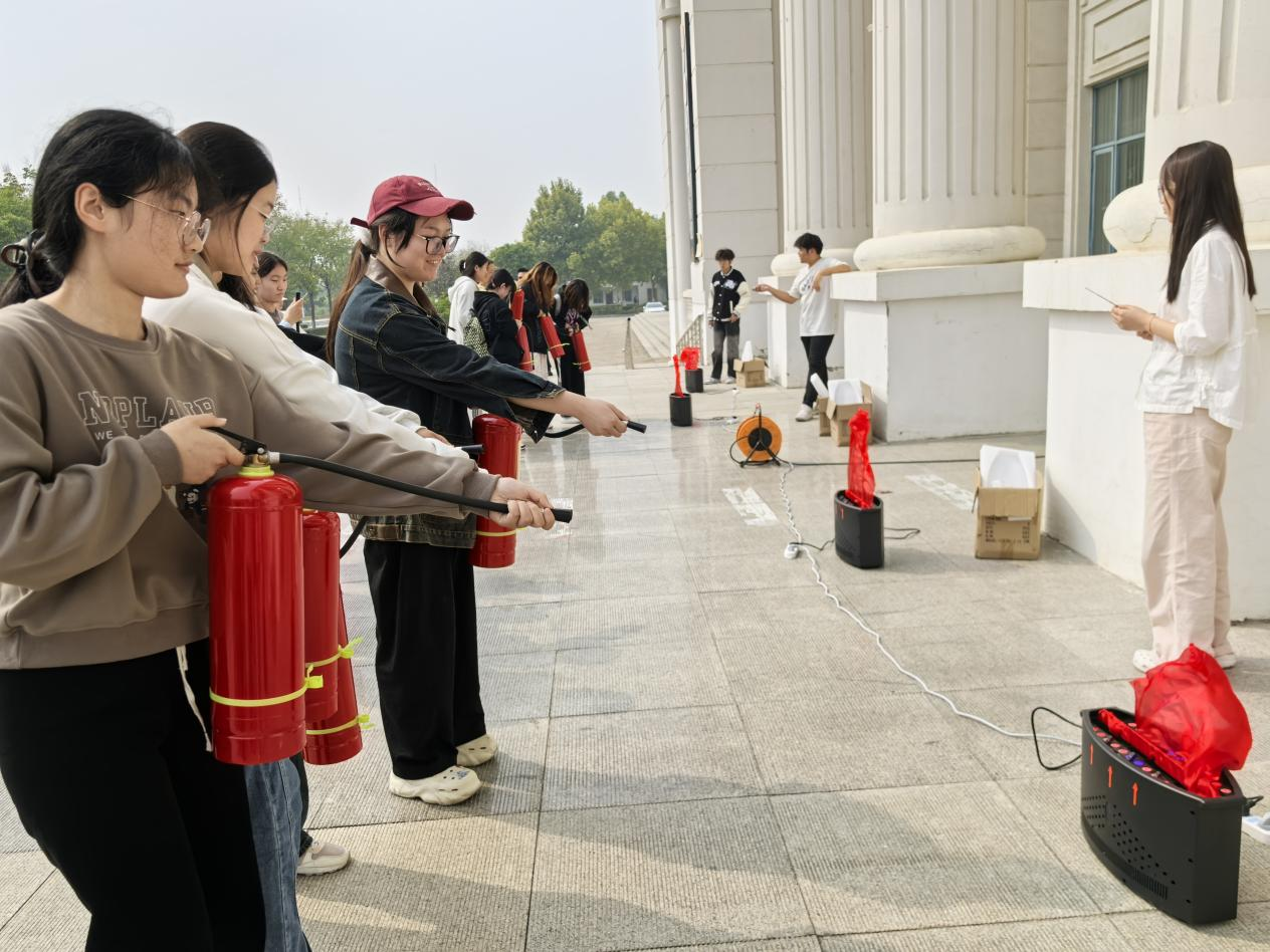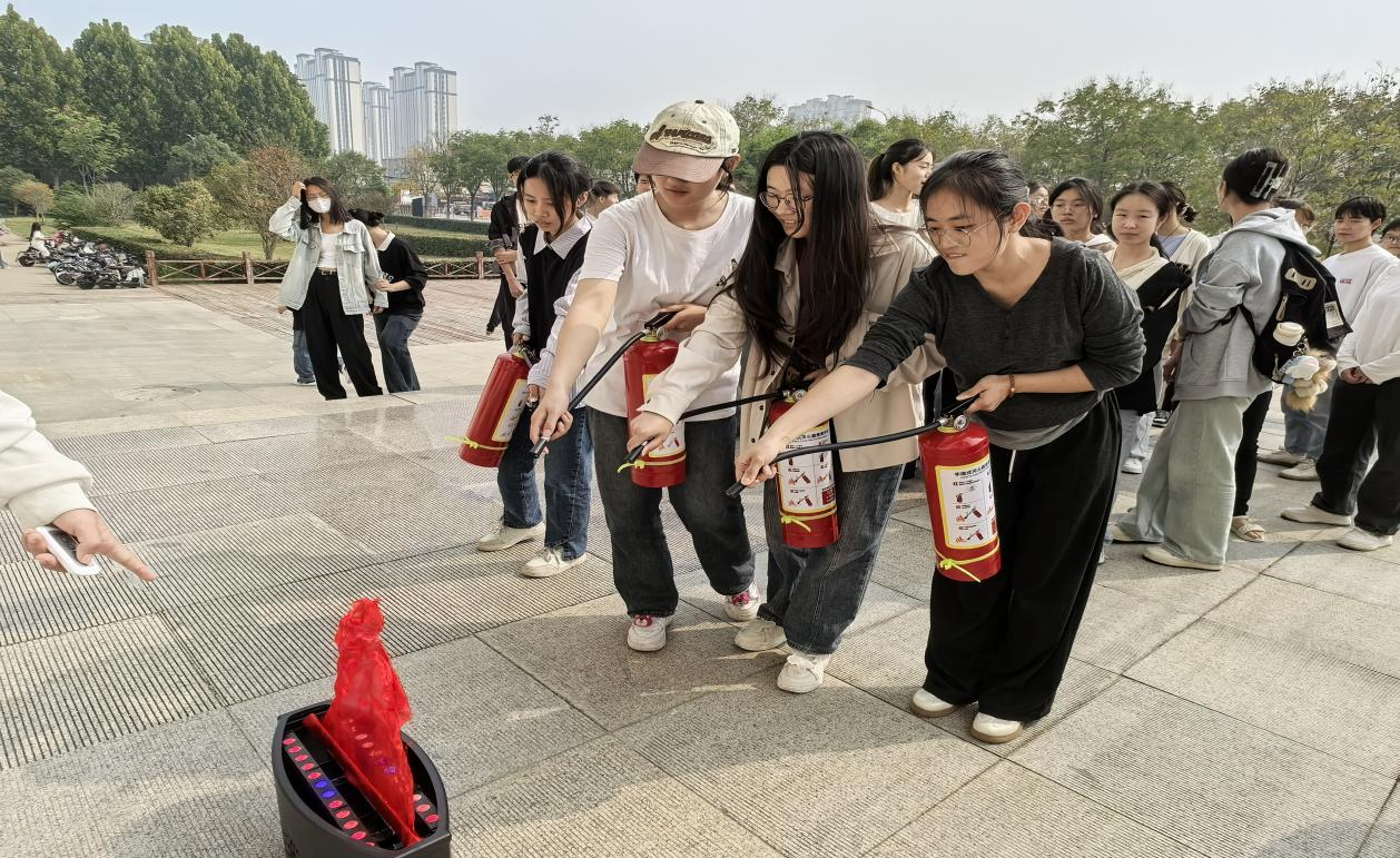 在培训中,保卫处老师和学院安全员详细讲解了火灾的危害性、预防措施以及初期火灾的扑救方法,并现场演示了灭火器的正确使用方法。学生们积极参与,纷纷动手实践,通过实际操作掌握了灭火器的使用技巧。