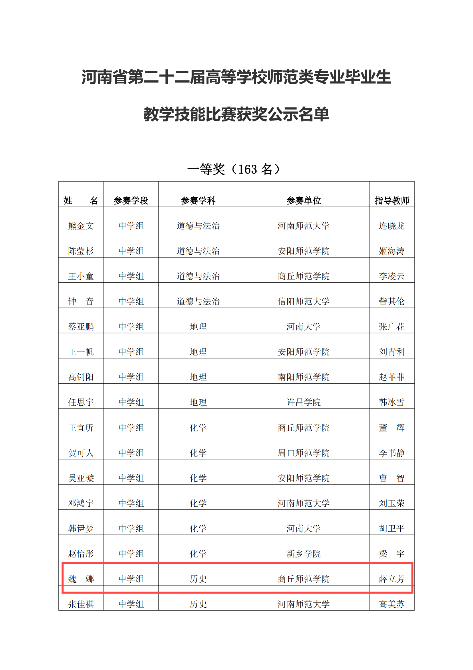 2024年10月25日至27日,河南省第二十二届高等学校师范类专业毕业生教学技能比赛在安阳师范学院举行。2021级历史学专业师范生魏娜、汉语言文学专业师范生赵瑞浩表现出色,在现场决赛中双双荣获一等奖,为Beat365官方网站赢得了荣誉。