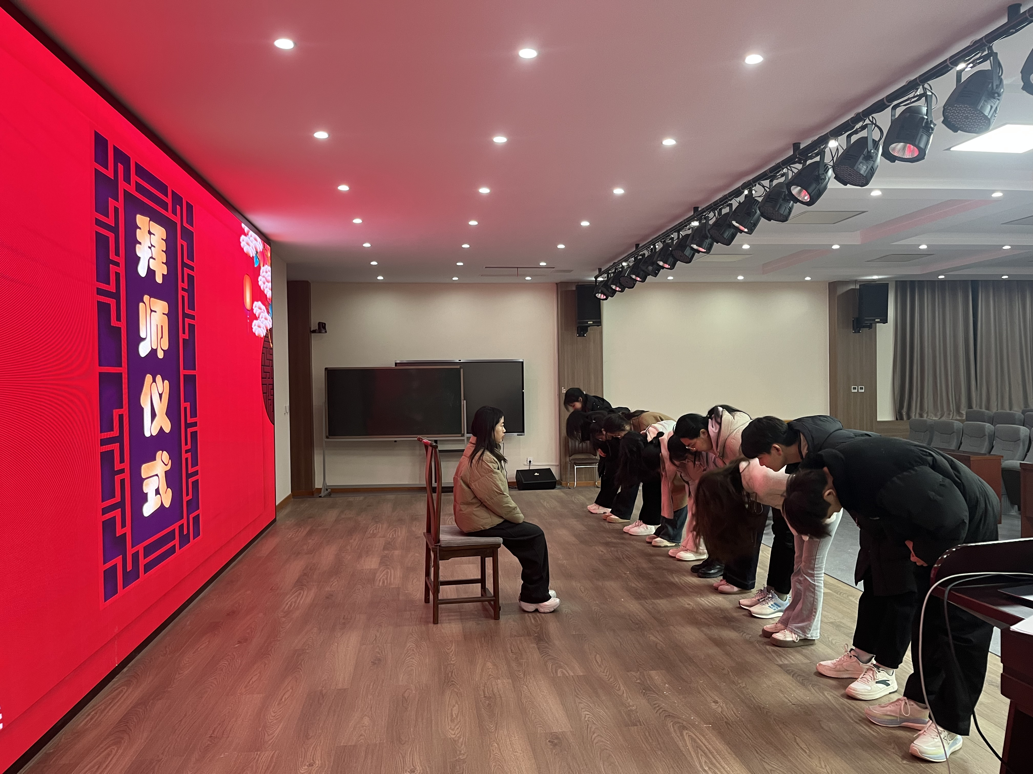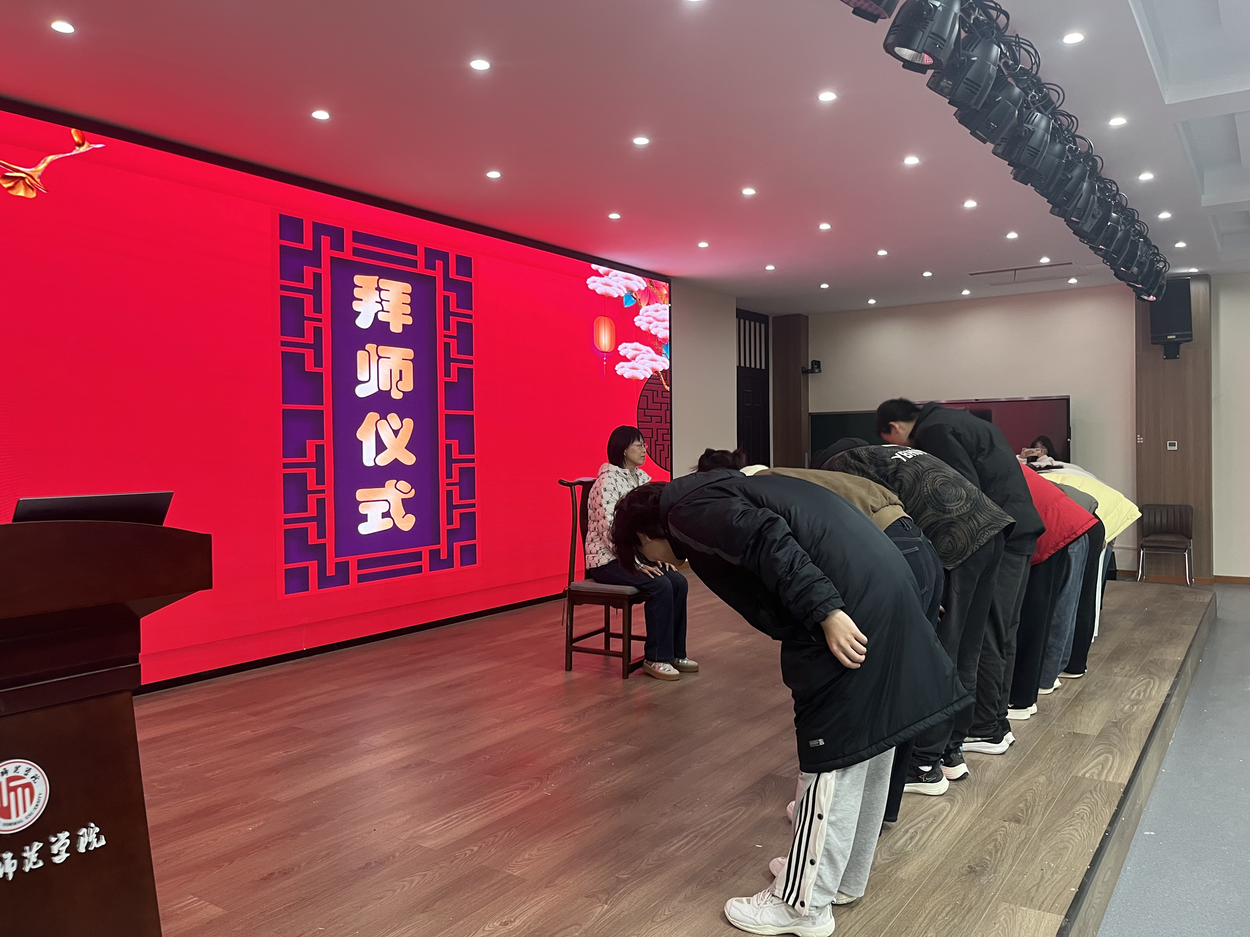 活动的第三环节是隆重的拜师仪式。尊师重教是中华民族的优良传统,为了传承中华礼仪,工作坊举行了隆重的拜师仪式。“一拜师范,以身作则,教我务实严谨;二拜师尊,悉心教化,教我明理求真;三拜师恩,倾尽所学,授我一技之长。”本环节各小组组员在组长的带领下一起向指导老师三鞠躬行拜师礼。简短而庄严的拜师仪式,增进了师生感情,体现了历史学专业尊师重教的优良教风与学风。拜师礼结束后,各坊主老师深入小组进行第一阶段的交流指导。