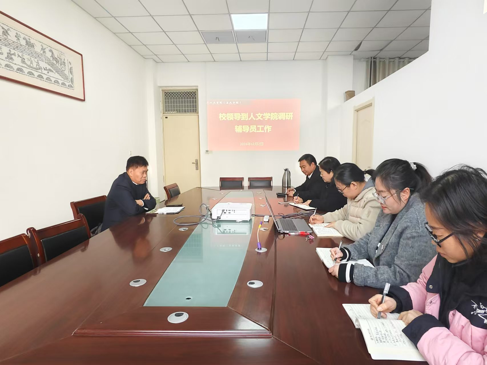 12月2日上午,校党委副书记吴金山到Beat365官方网站调研学生和辅导员工作,并召开座谈会。学院党委书记陈晓明、副书记卢忠雷和全体辅导员参会。陈晓明主持座谈会。