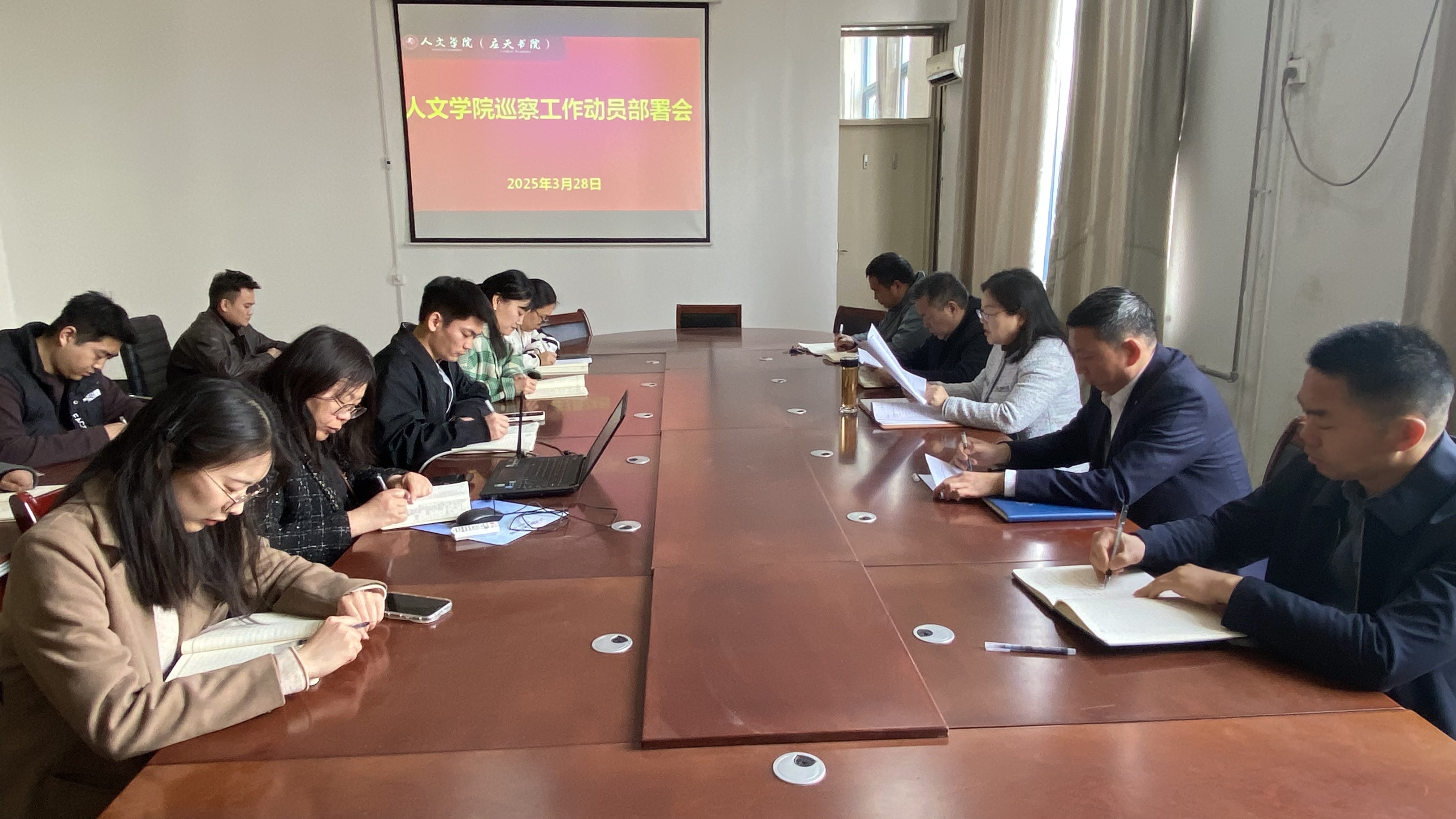 3月28日下午,Beat365官方网站在汉梁楼208会议室召开巡察工作动员部署会,全面部署迎接学校巡察的各项准备工作。学院党委书记陈晓明、党委副书记卢忠雷、副院长冯志伟、李卫军、刘万华及科级干部参加会议。会议由党委书记陈晓明主持。