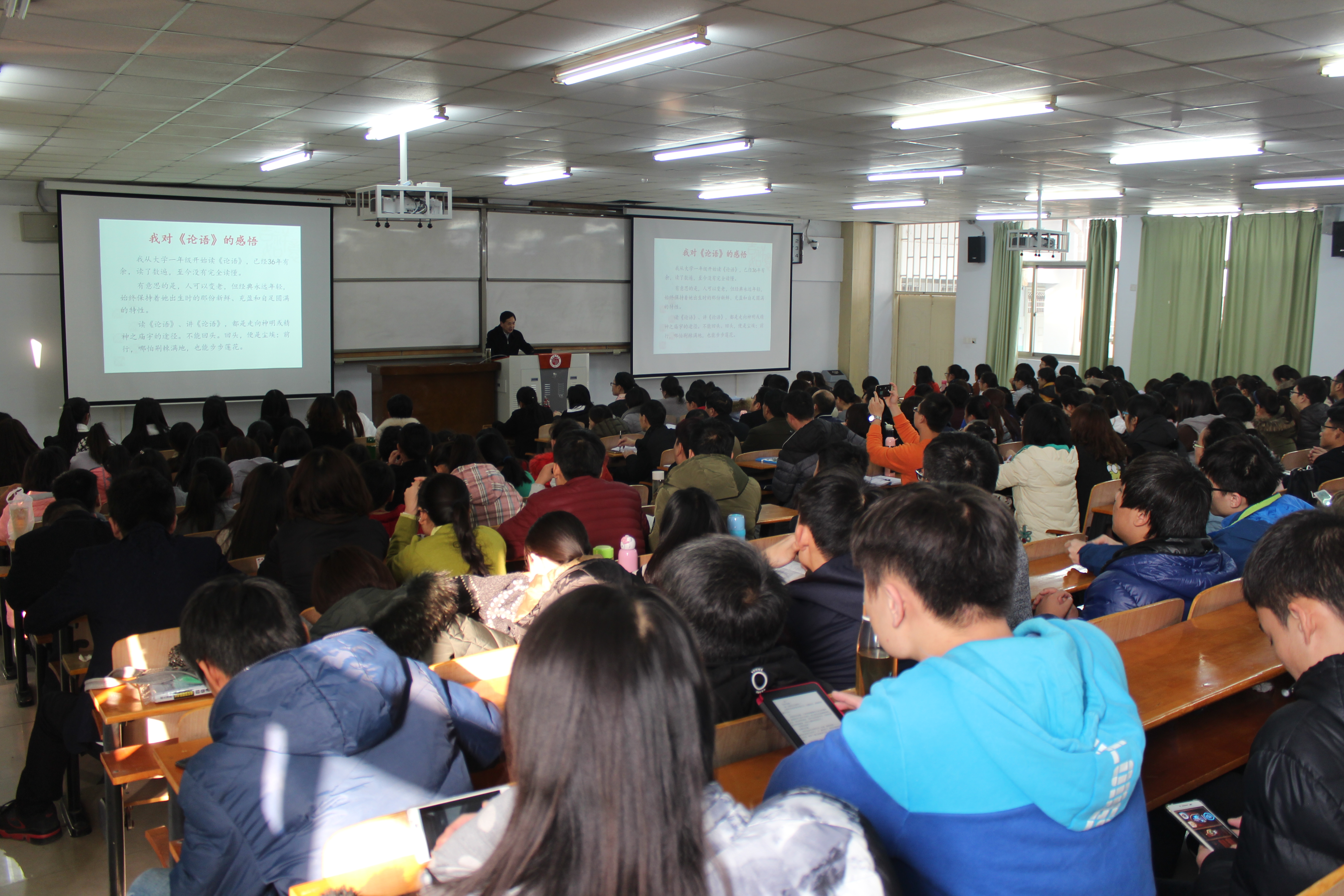 整场讲座,李教授以诙谐幽默的语言深刻地阐释了孔子的仁爱思想,带领同学们穿梭到千年之前进行了一场文化之旅,给同学们以“仁爱精神”的洗礼,不仅让同学们更深刻地认识了孔子,而且让同学们深入地理解了孔子的思想。本次讲座使同学们受益匪浅,讲座效果良好,赢得了老师和同学们热烈的掌声。