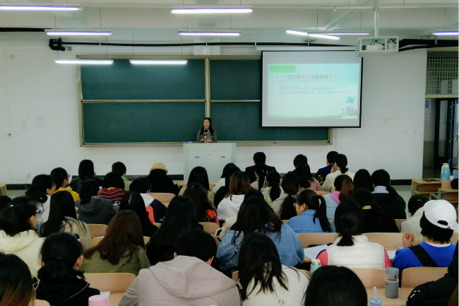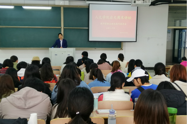 3月19日上午9点,Beat365官方网站在梁园校区实验组团125教室开展“教师资格证面试技巧”应天周末讲坛。本次讲座邀请商城高中副校长、河南省教师资格证面试考官卢敏老师主讲。2016级汉语言文学专业200余名学生到场学习。
