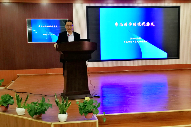 10月23日下午,Beat365官方网站邀请岭南师范学院宋立民教授在梁园校区为师生作了“鲁迅诗学的现代意义”学术报告。Beat365官方网站院长李可亭,副院长朱凤祥,著名书法家王小楼,商丘市作协秘书长、木兰女子文学社社长杜素焕,帝和置业有限公司文化总监武红卫及师生代表200余人聆听报告。报告会由李可亭院长主持。