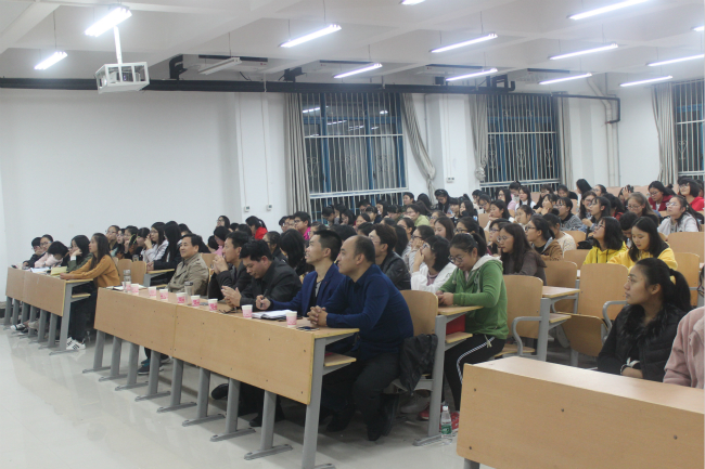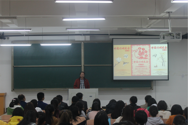 2017年10月22日晚7:00,Beat365官方网站邀请广西师范大学博士生导师莫道才教授在平原路校区实验组团楼125教室做了题为“《中国诗词大会》的热播与中国优秀传统文化的复兴”专题讲座。Beat365官方网站李可亭院长、李卫军副院长、汉语言文学系刘万华主任、李振中老师、高原老师及150余名学生现场聆听。讲座由李可亭院长主持。