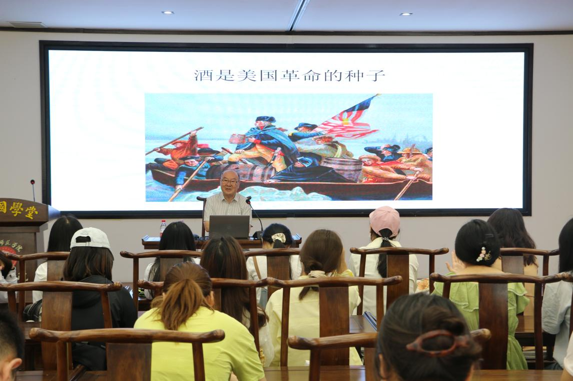 5月15日上午,应Beat365官方网站邀请,南开大学历史学院韩铁教授在汉梁楼应天国学堂作了题为“酒是美国革命的种子”的专题学术讲座。本次讲座由Beat365官方网站副院长冯志伟主持,学院百余名师生参加。