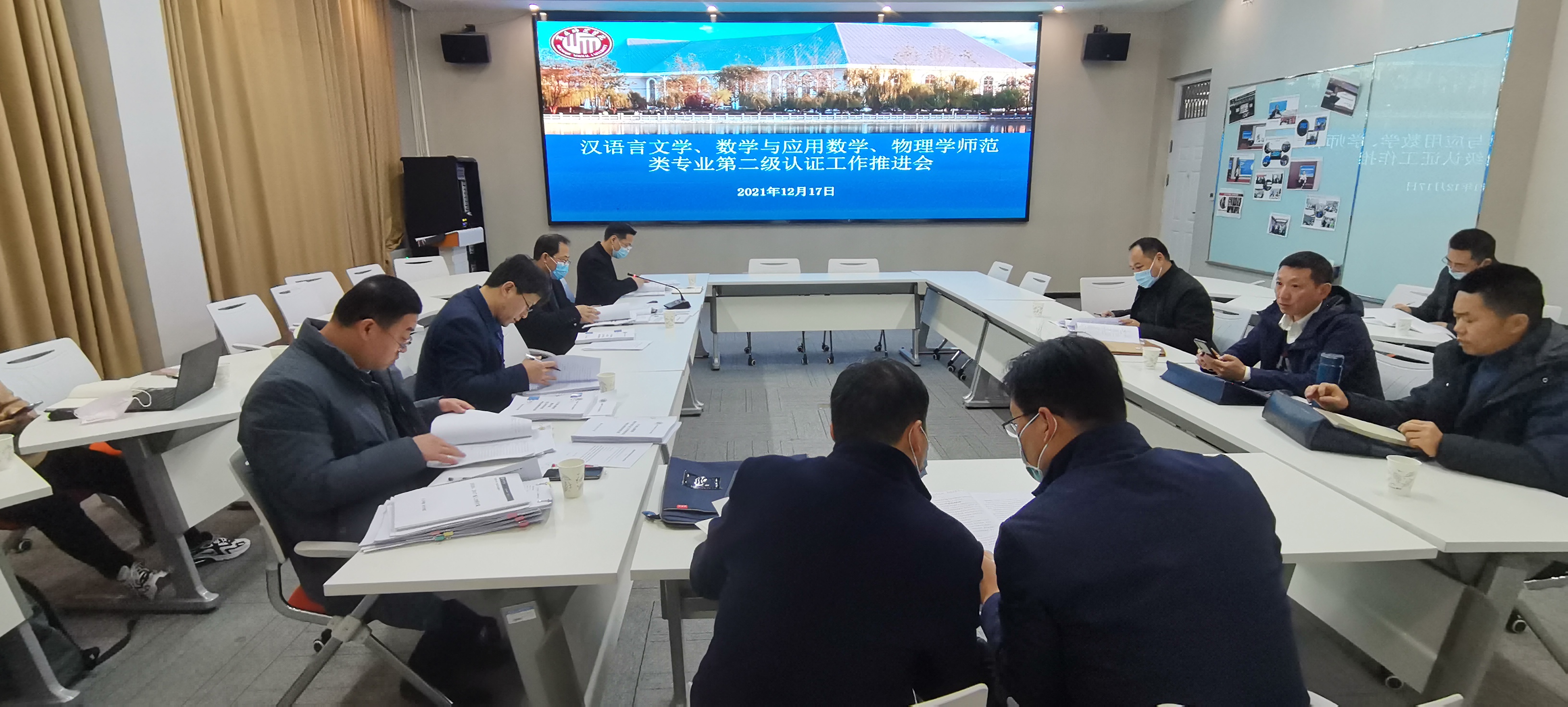 与会人员对照师范类专业第二级认证标准,认真审查汉语言文学、数学与应用数学、物理学三个师范专业的认证申请书及相关附件和支撑材料,并现场指导,分享交流认证经验。