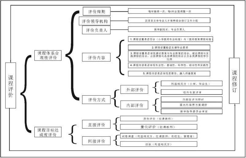 包括课程体系合理性评价和课程目标达成度评价两个部分,基于评价结果,进行课程修订,形成持续改进的课程评价机制。