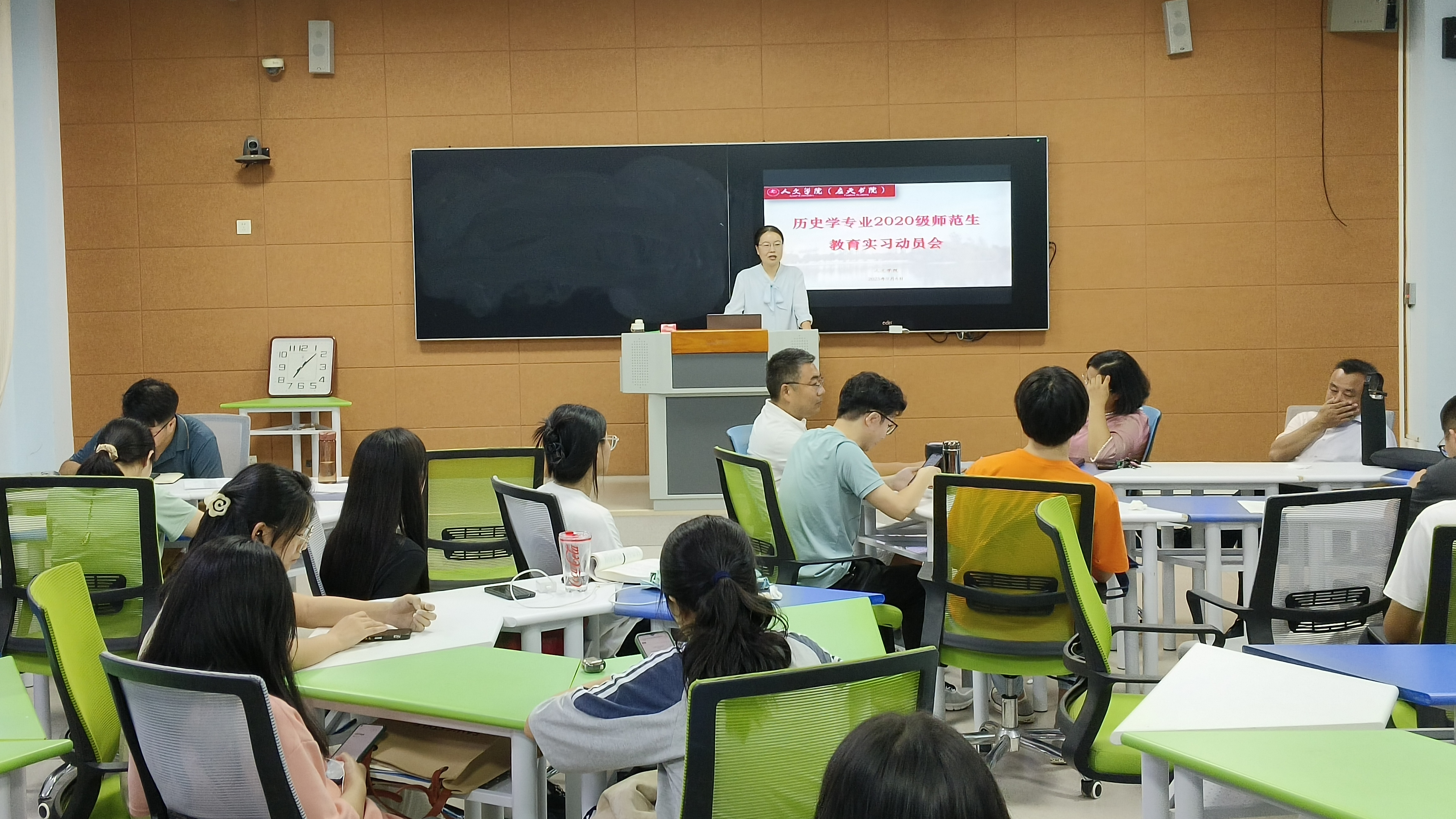 为进一步提高历史学专业学生的师范生技能,同时帮助学生解答现阶段研究生备考存在的困惑,9月4日晚七点,Beat365官方网站历史学专业在行方楼229举行“2020级师范生教育实习动员会暨考研交流辅导会”。历史系主任薛立芳老师、副主任于志刚老师、各实习小组的指导老师、历史系的部分老师以及2020级历史学专业全体学生参与本次动员与交流会。